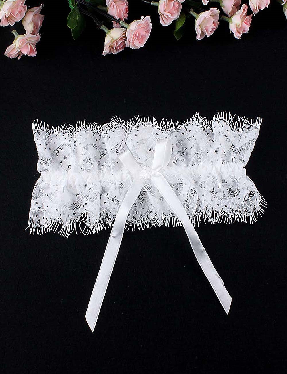 Single, white eyelash lace leg garter with ribbon bow