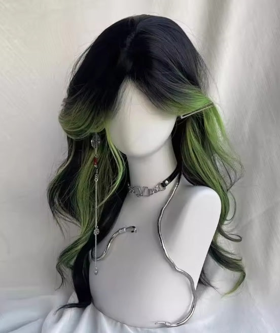 • Load image into Gallery viewer, Wig Black Ombre Green Layered Long Wavy 26"+