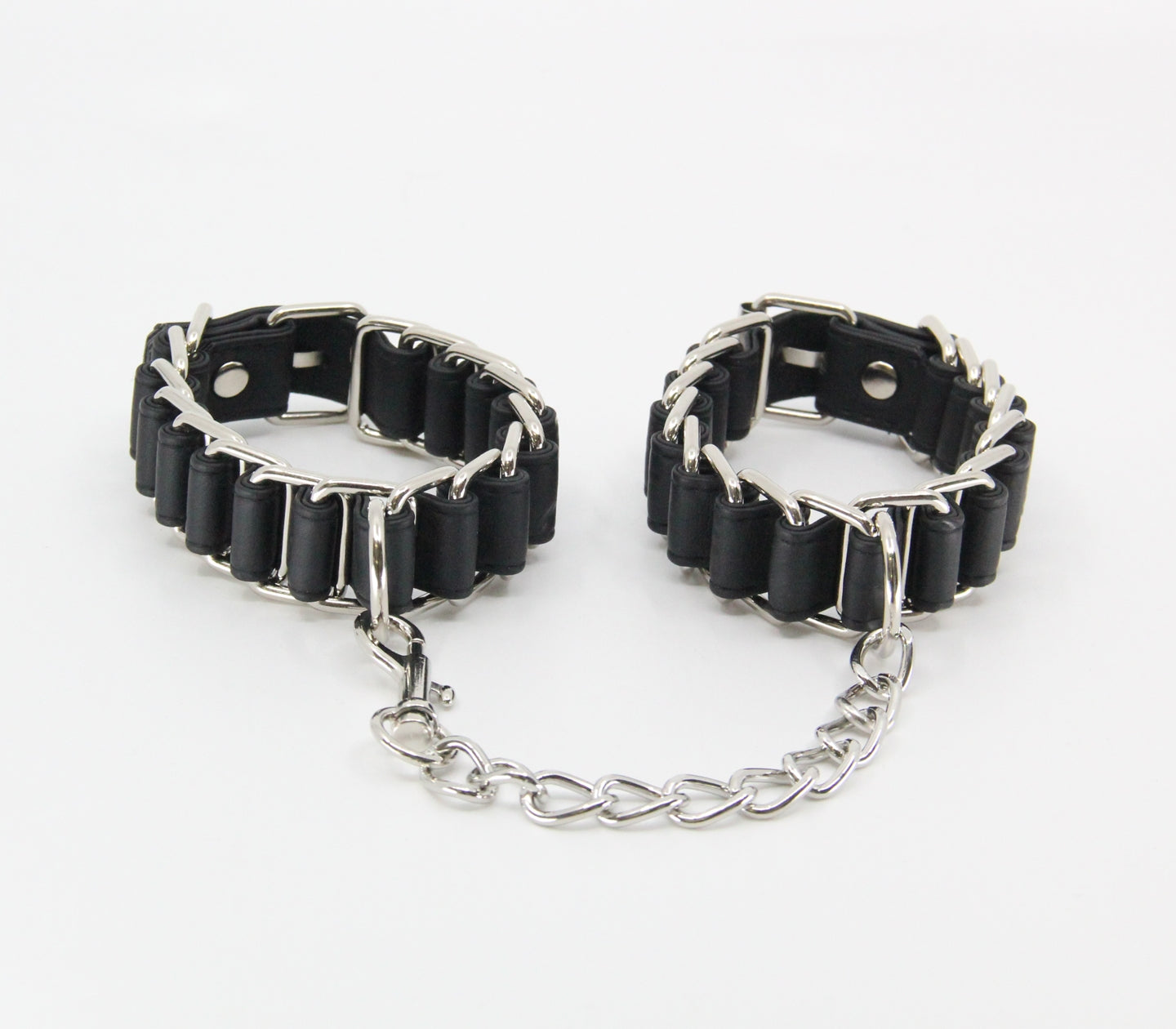 Each cuff sports a sturdy D-ring which can be used to connect your choice of chain or attach to a spreader bar.