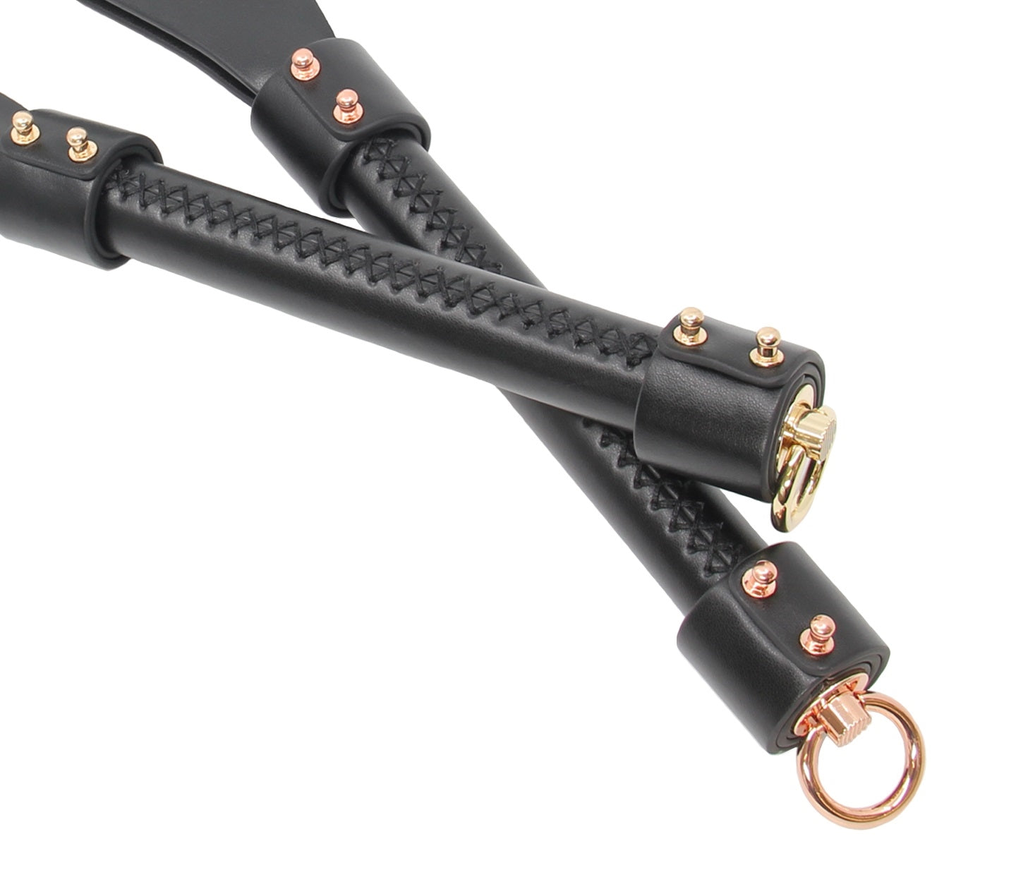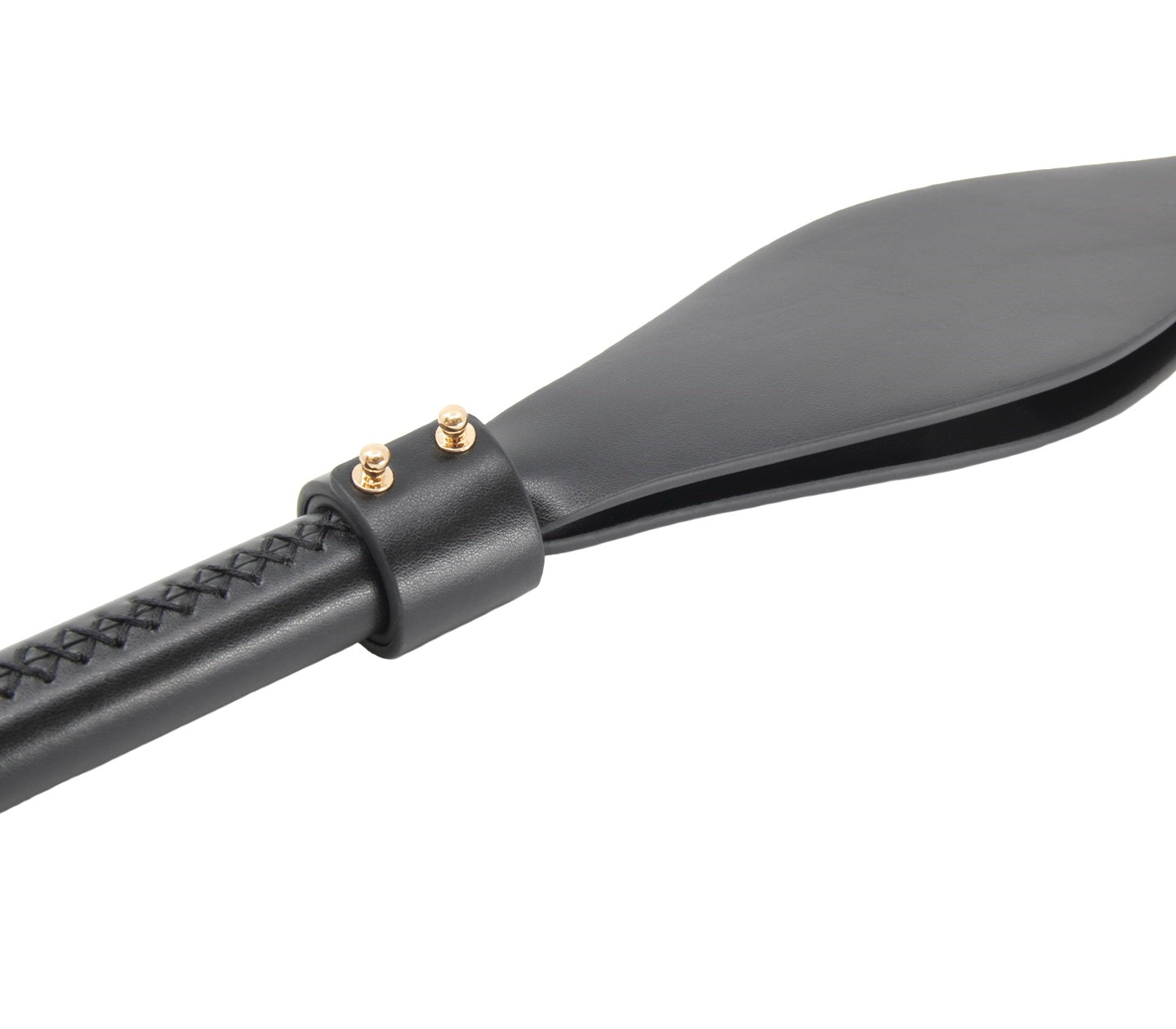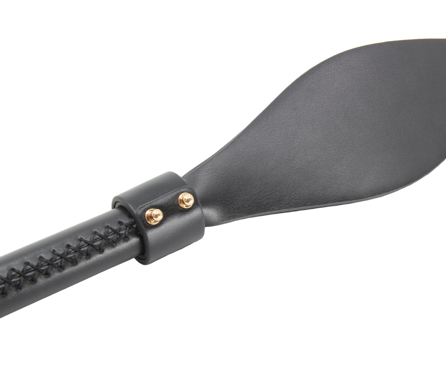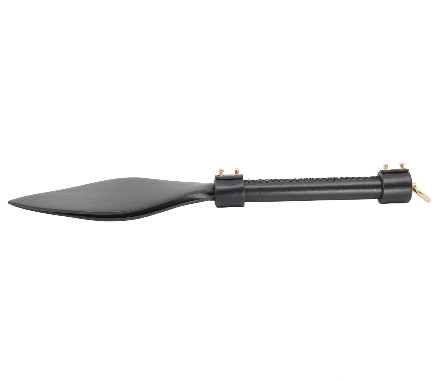 Shaped faux leather slapper paddle with gold hardware.