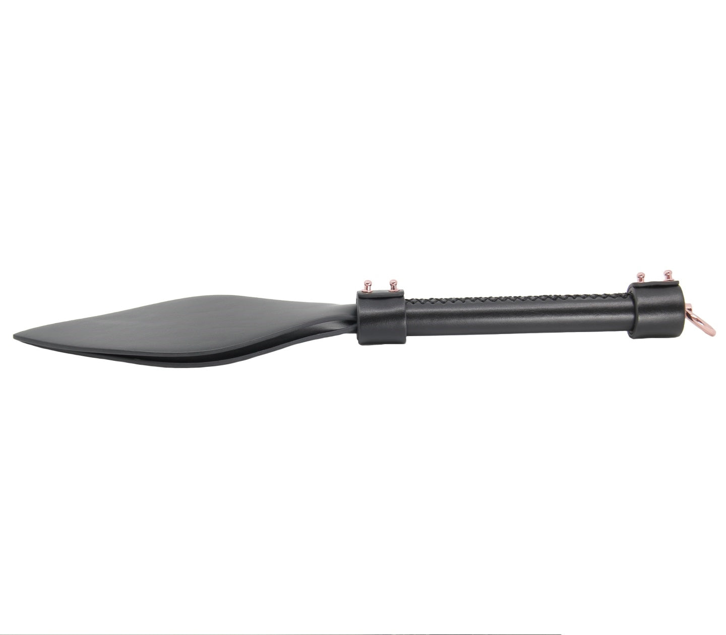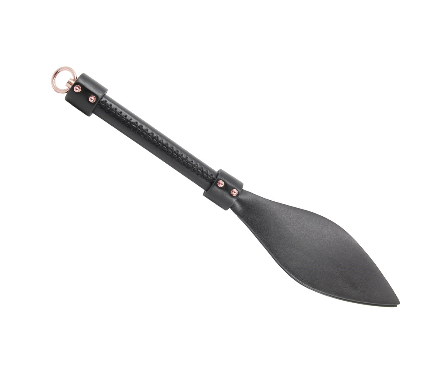Shaped faux leather slapper paddle with rose gold hardware.
