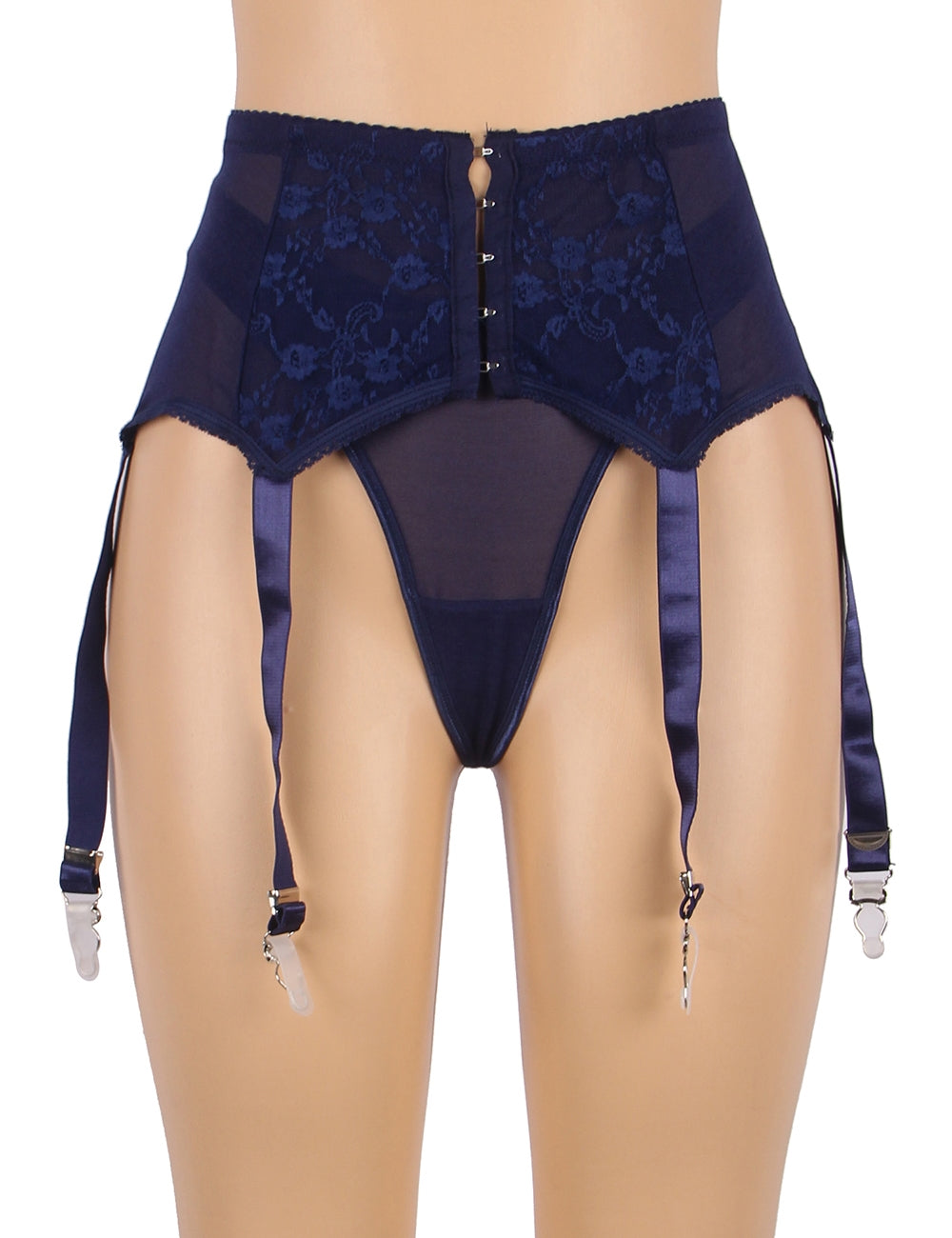 • Load image into Gallery viewer, Blue Lace Garter Panty (8-10) M