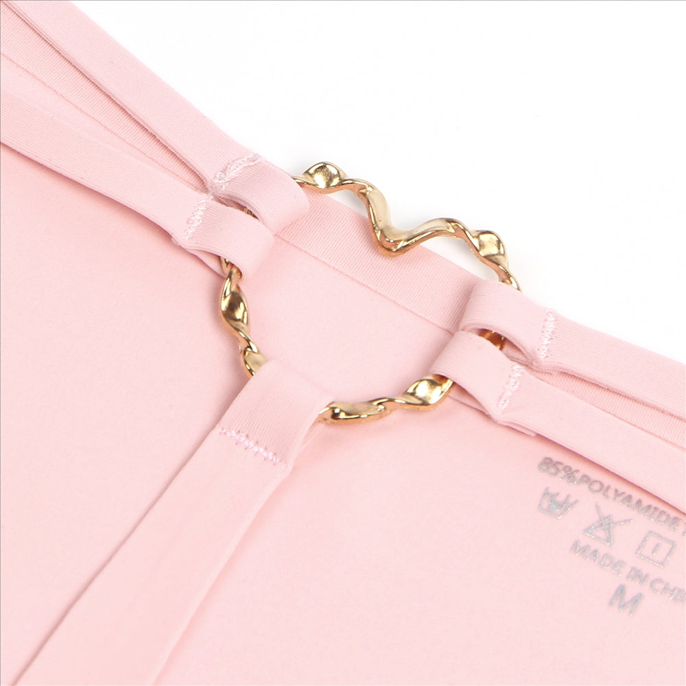 Seamless, ice silk g-string with double waist straps and decorative metal ring at hips and connective heart accent at back