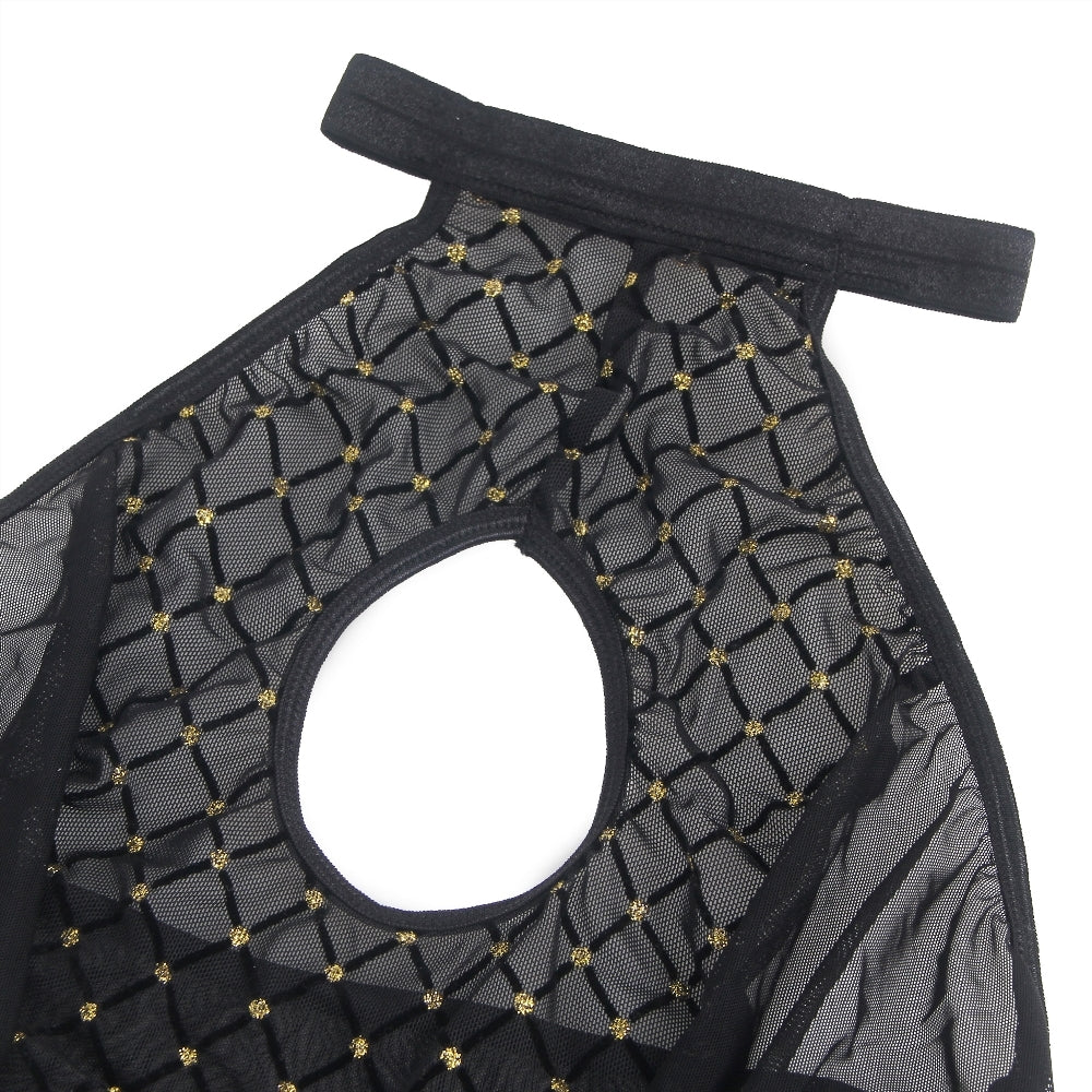 The outer layer of three-dimensional flocking texture is high-grade without sticking to the skin, while the inner layer of mesh is soft and skin-friendly. Cut out design at front, adjustable neck strap with metal buckle fastening adds a luxurious detail.