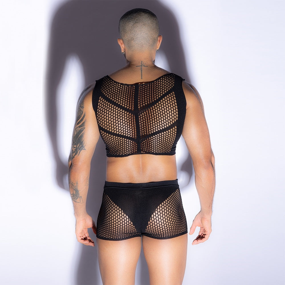 Mens Rib Singlet & Brief Set Black