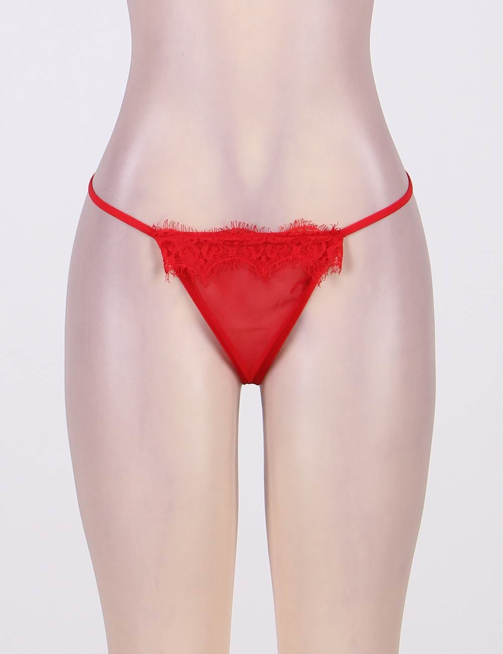 The long sleeves add an extra layer of warmth, making it perfect for chilly nights. The lace paneling on the sleeve cuffs, front placket, and hemline add a touch of sophistication to the overall look. The robe features a faux silk waist belt for an elgant look and flattering silhouette. The short skirt length and thong-style panties ensure all-over coverage while still maintaining sexiness.
