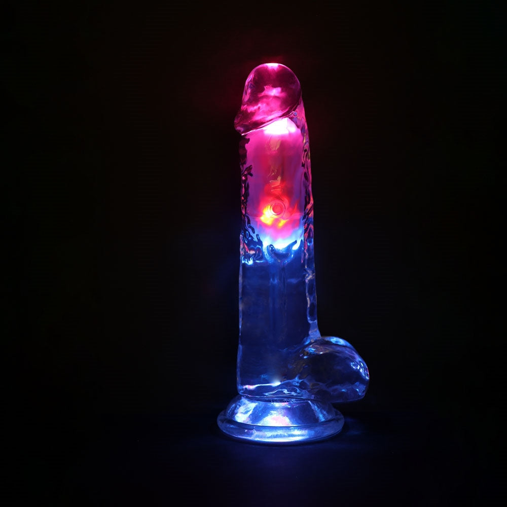 Clear with LED 22.5 cm USB Rechargeable Vibrating Dong with Remote