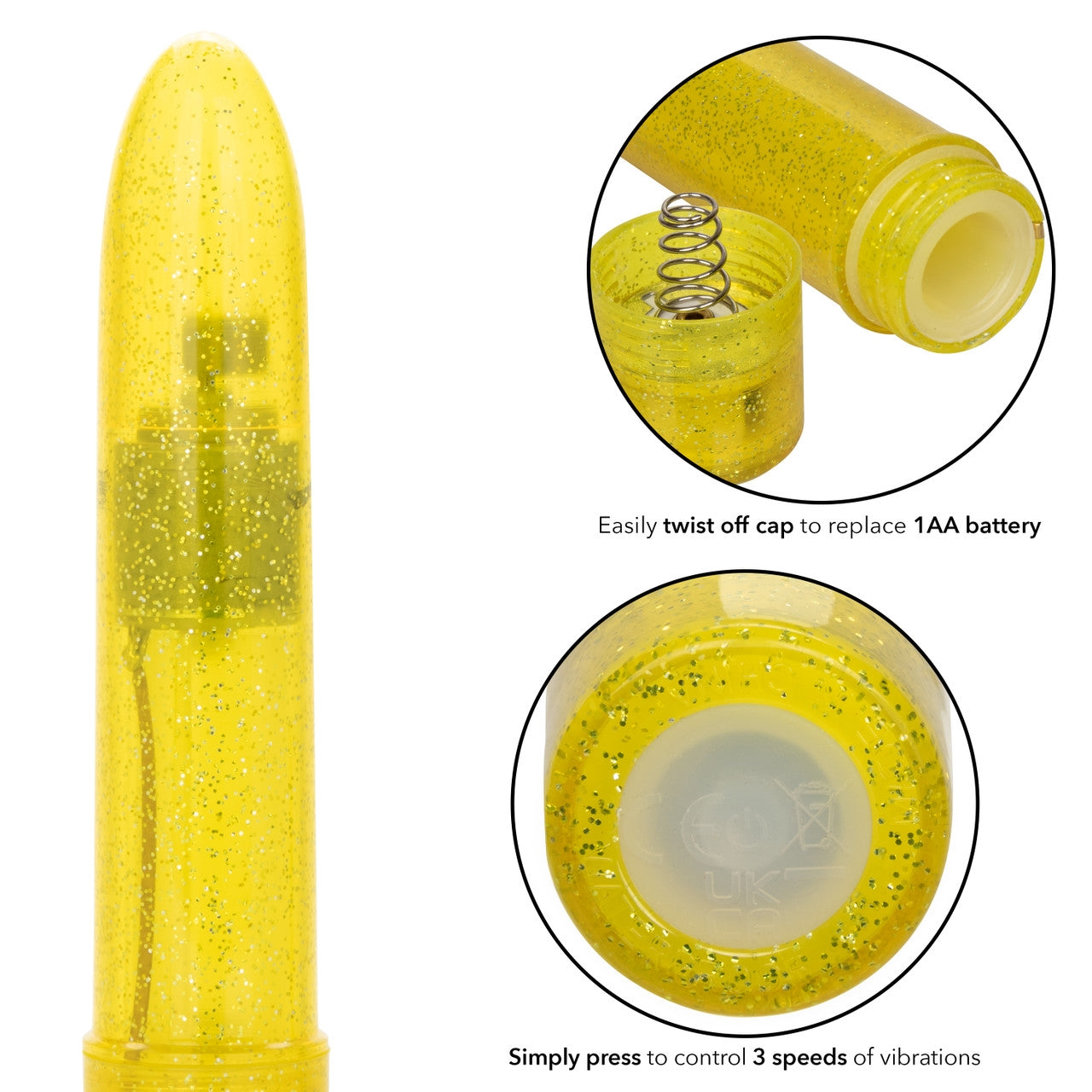 The playful vibe is made from a smooth ABS plastic with sparkly glitter finish and silicone button.