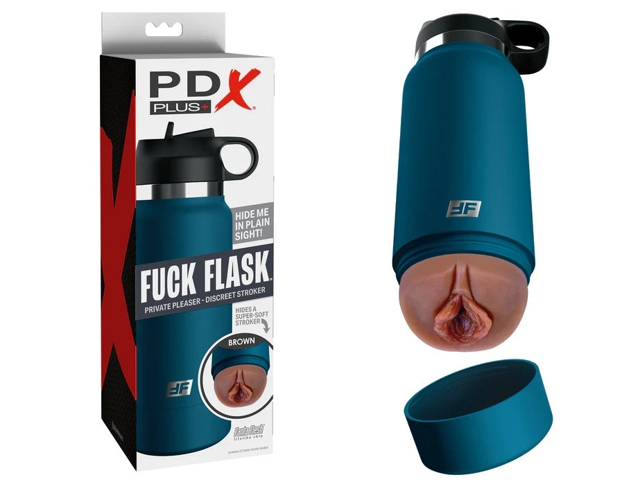 PDX Plus Fuck Flask Private Pleaser - Discreet Stroker - Blue Bottle- Brown Sleeve