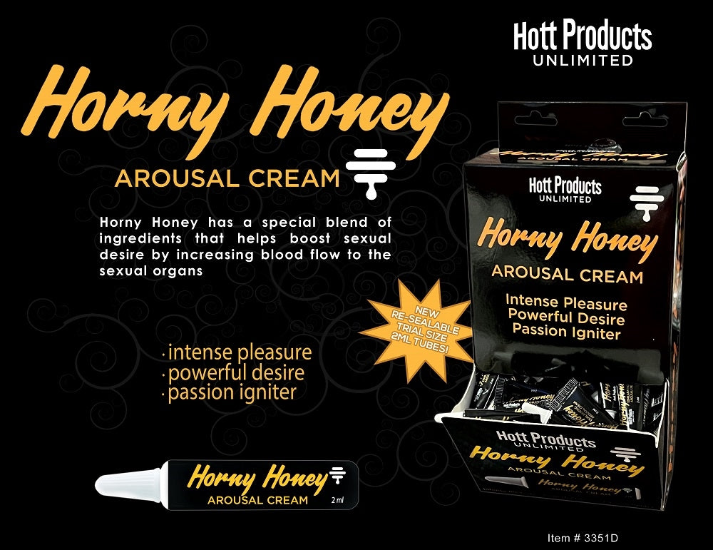 Wanna get your Honey Horny? Our "HORNY HONEY" arousal cream is sure to get your lover hot!! Our "specially patented" formula is designed to stimulate both Men & Women by concentrating blood flow to the genital area! This silky smooth tantalizing cream will arouse your partner to new heights that will have them "Begging" for more! Horny Honey has a special blend of ingredients that helps boost sexual desire by increasing blood flow to the sexual organs.